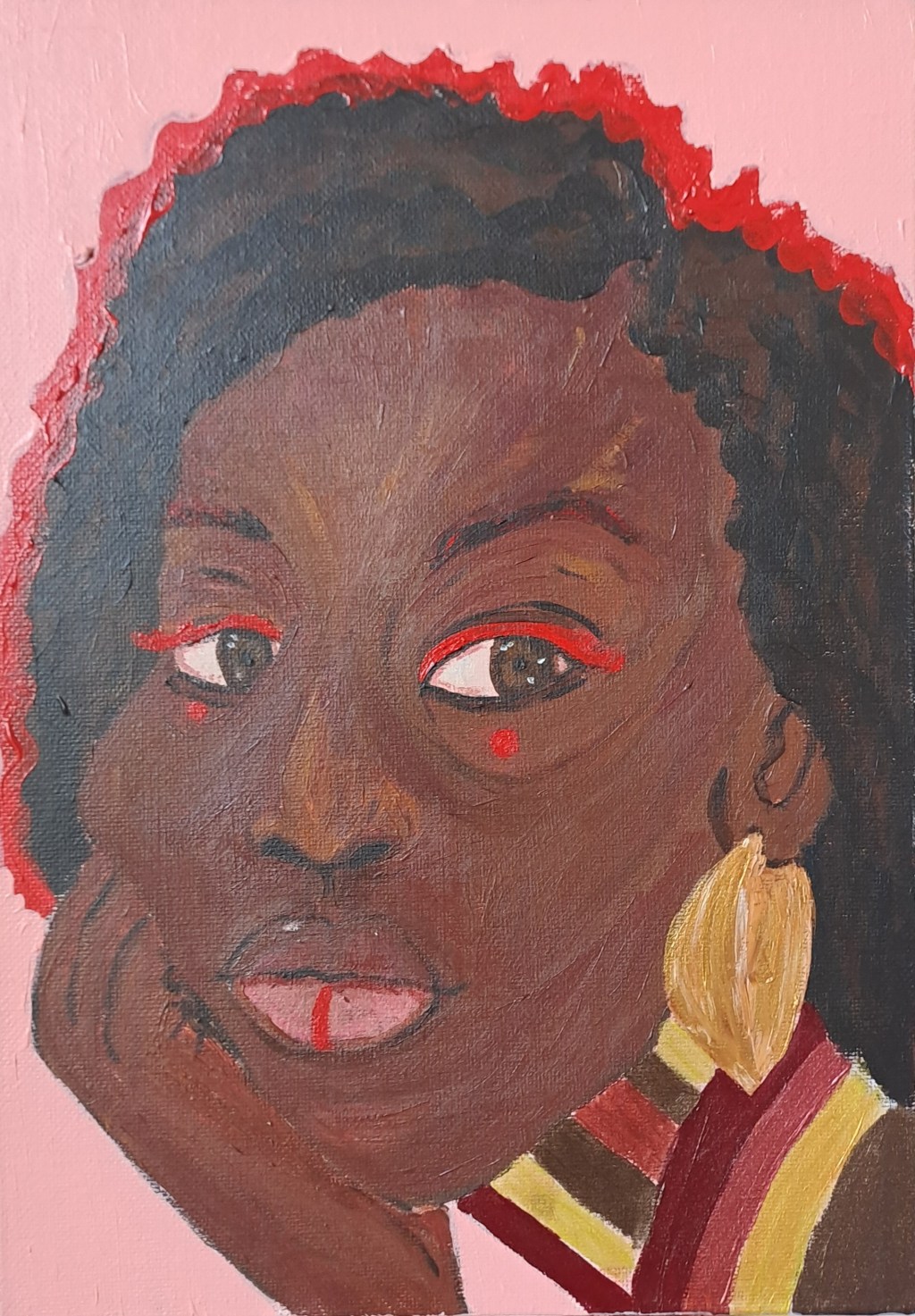 Painting deep dark skin is something that I am teaching myself how to build on colour and add dimension and softness where there is not. I am not looking for realism in my work I am nurturing simple expression.